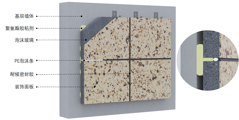 2.冷熱橋少,系統(tǒng)節(jié)能效果好:板縫內(nèi)填滿聚氨酯密封材料,斷絕板縫熱橋,同時通過斷熱橋連接件的措施,減少系統(tǒng)熱橋,提高系統(tǒng)節(jié)能效果;