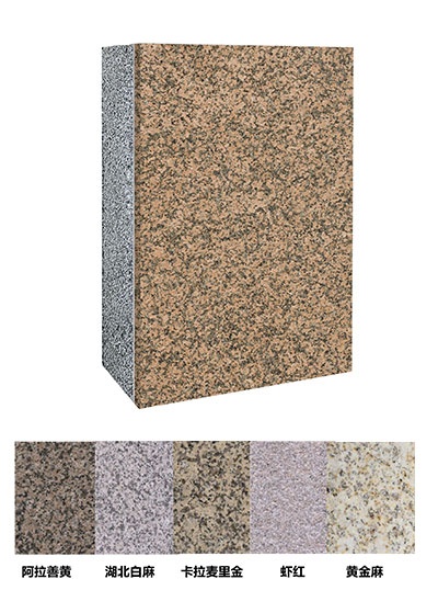 久石板 | ![]() | ? 以天然薄石材為裝飾層,通過工廠化預(yù)制工藝復(fù)合保溫芯材而成的保溫裝飾板。 ? 產(chǎn)品構(gòu)造:8-12mm石材+泡沫玻璃 +背襯 ? 優(yōu)點(diǎn):天然石材,飾面立體感強(qiáng);成本降低(對比干掛石材幕墻)穩(wěn)定性好 ? 應(yīng)用:適用于住宅裙樓與商業(yè)建筑、辦公樓外立面 |